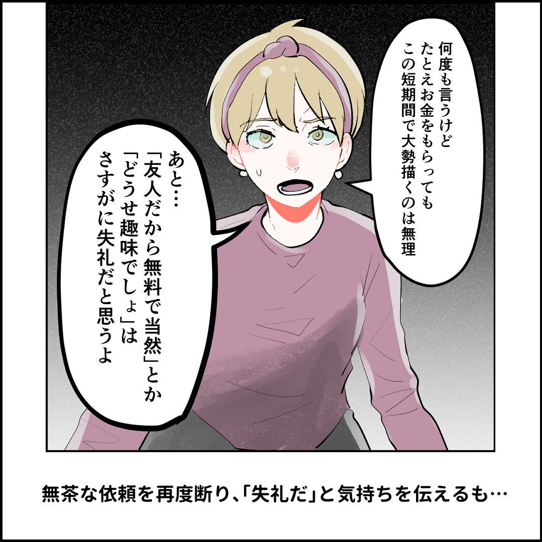 趣味の範囲内(自発的にやりたいもの)なら、無料で描くこと自体は大好きなのですが…