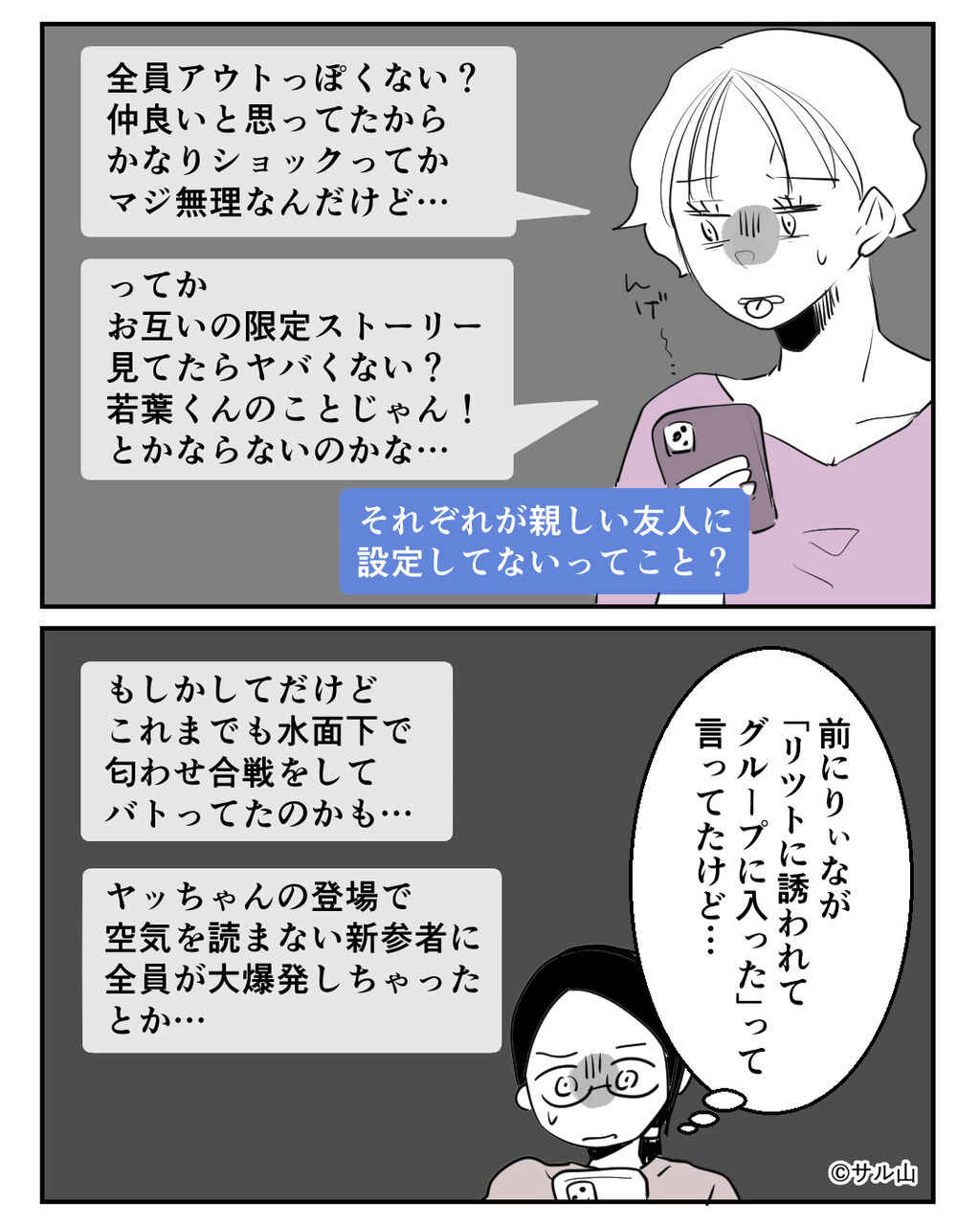 りぃなと自分以外のメンバーが若葉パパと何らかの関係があることを感じ取り、