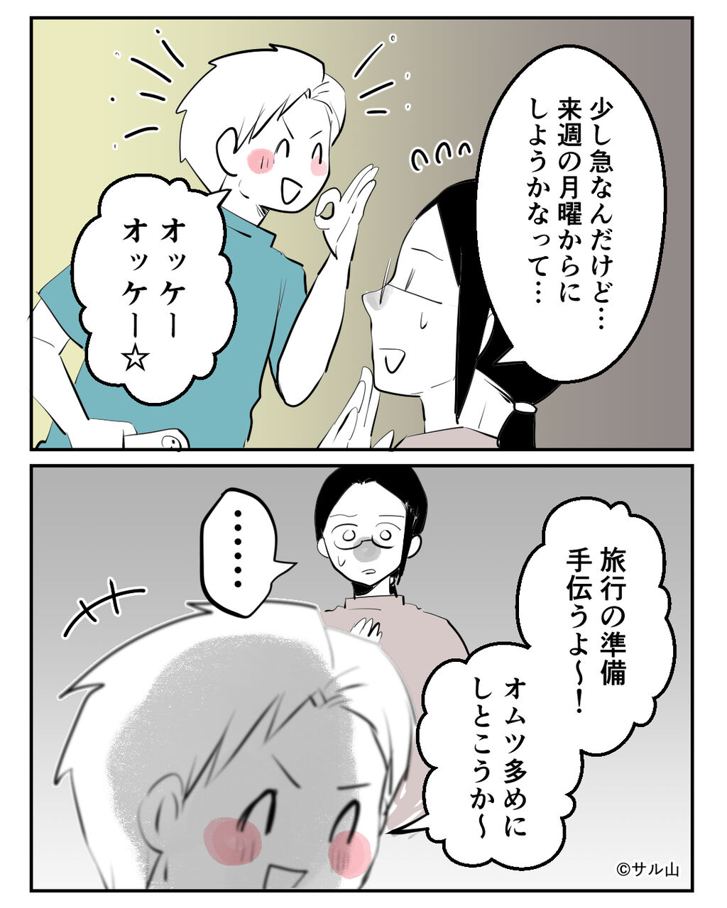 リツトに「来週から母娘で旅行に行く」と伝えるヤスミ。